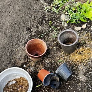 大分減らした鉢物 取捨選択が出来るように中身の確認をお願いする事数年。 アレが入ってる筈、アレが有った筈、と言われ残してた鉢物達。 何年経っても何が入ってるか分からないと答えが帰ってくる、、、 最終確認をして処分、しかし、空だからと言われた鉢には小型の球根、、、後々の為に不明札を刺して来春まで待機。