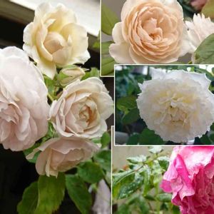 今年春~秋咲いた品種不明の薔薇の写真です(^-^) 左と右上は同じバラ。 品種名不明のつるミニバラとして売っていたものを確か去年購入したんだったかな(うろ覚え) 一昨年だったかな?(-ω-;) つる、とは言っても一般的なつるミニバラに比べると枝は伸びない。ミニバラにしては大きめの葉っぱもつけるので、 つるミニバラと言うとよりは小中輪の花をつけるシュラブタイプのバラって感じ?(-ω- ?) 花は4~5センチくらい。 香りは強め。 ボタンアイになったりならなかったりする。 花色は薄紫~白~薄茶色という、いわゆりニュアンスカラー 考察するに、グリゼリという品種ではないかなぁと。 でも花がグリゼリに比べると小さいような。 若い未熟な挿し木苗なんでそのせいもあって花径が小さいのかも。 何せ、実物のグリゼリを見たことがないので机上での比較でしかないんですが。(・´ω`・) 右中央の白い薔薇も挿し木苗で8月終わりに購入したもの。 ルブランの夏花に似てる気もするけど、ルブランに比べると花弁が多いような。 こちらもまだ若木なので本来の花の形ではない可能性が大ですね(・´ω`・) 右下は多分オールドローズ。 みどりのまとめにもあげてます(たいした観察記録にもなってないけど)(-ω-;) フランソワゴーランかなぁ(-ω-;) 葉っぱも似てなくもないけど。 (-ω-;) ウチにフランソワゴーランがあるのですが、咲いた時に比較しても素人目には「似てるなー……」くらいの感想しか出ない(笑)( ・∀・) 品種不明のバラの品種特定が出来れば栽培する際にもいろいろ対応しやすいんですけどねぇ(^-^) 耐病性や耐暑性ひとつ取っても薔薇によって様々ですからね~(^-^)