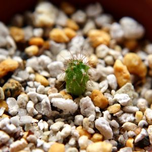 サボテン実生を特徴ごとに分けてみた⑦ 棘玉。1個。 緑玉で黒っぽい棘がトゲトゲしている。大きくなったら痛いヤツか(;’Д’)