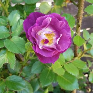 薔薇FLブルーフォーユー初開花🌹😆🌹 紫で咲いてくれた👍これなら青みかかってきそう。 つぼみが濃いローズピンクなので、一番陽当たりがよくない(午前中3時間)ところに鉢を移動したかいがあったのかな😅 去夏移植をして瀕死になりかけたのにつぼみは5、60つけてる✨ 強いわ~