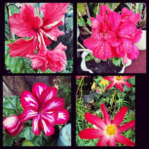 赤いお花達❤️ 🌺レッドフラミンゴ ゼラニウム🌼 チョコレートコスモス赤とんぼ💝 まだまだ咲いてくれてます😌✨💓