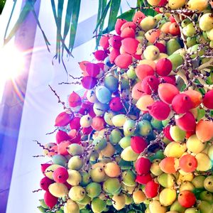 ✨ 🔴🟡🟢ご近所のマニラヤシの実です 丸くて カラフルで 食べてしまいたいです😋ෆ̈