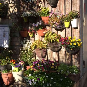 通り道にあるカフェ いつも色とりどりの季節の花が、ハンギングやコンテナで綺麗に飾られている うらやましい(*´∀`*)