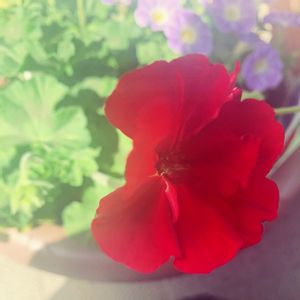 ゼラニュームの新しい蕾がやっと、花開きました〜🌼 photo by 息子くん👦