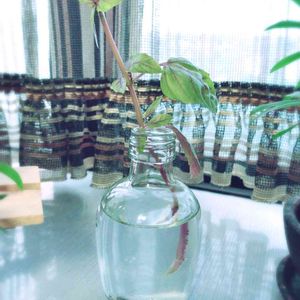 育てていたダークオパールバジルが かなり調子悪くてもう葉が落ちるほどに 枯れてしまってて、何とかしたいという思いで、 唯一元気だった子を水差しにして根っこが 出ることを祈ろうと思う。 やっぱり室内向けじゃないのかな? 虫がついたから殺虫剤したのがダメだったかな? 初心者なので色々と疑問が残ります…。 次は元気に育てるぞ…💪💨