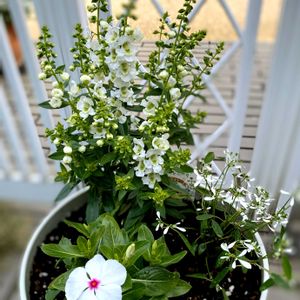 大好きな3つの白❣️アンゲロニア、ユーフォルビア、ニチニチソウ。 どれもでっかくなるはずなので今はゆったりと☺️ 線、点、面、の原則で植えたつもりですが、線、線、面、かな😅