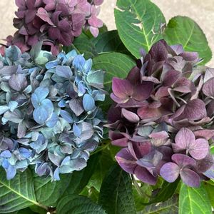 一昨年に花終わりで購入した【てててまり】ピンク どうにかブルーにできないかと土も肥料も青系で、おまけにミョウバン水もあげてみたら…なんとなく青っぽく(紫?)色付いてきました😄 この後ピンクになっていくとか、あり得るのかな🤔