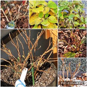 昨年植えつけたアジサイ苗の観察。1月8日。 雪だるま、マジカル、イズミチオリ、ウォーターブルー、安行四季咲き。 てててまり。