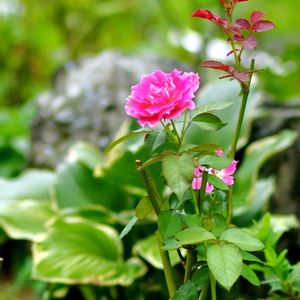 バラ アンブリッジローズ 涼しくなって、撮影もきつくなくなりました😅 一輪のバラと蕾、角度を変えて撮ってみました💕🎶