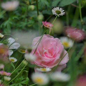 今日のお花 ミニバラ 花壇の中で埋もれてる名前知らずのピンクちゃん💓