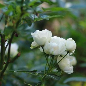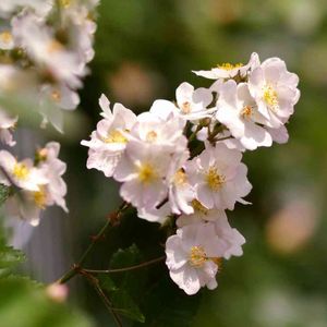 ワイルドローズ 野バラ トゲがたくさんある野生のバラ、ピンクのツボミから真っ白いお花が房状に咲く姿💕 黄色いシベもたまりません(^^)