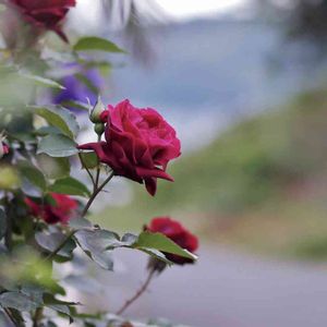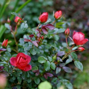 花色が茶系の赤、今日は黒っぽい赤にみえますが、渋いお色です(^^) 若葉の黒葉もシックなんです❣️ ん〜ん、惚れぼれ(^^)