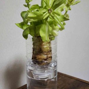 食べ終わったキャベツの芯を水にさしてたら こんなオブジェみたいになりました🎵 先端部分は花のような形になってます。 根っこもかなり伸びて来ました! もう少しこのまま育ててみようかな😃