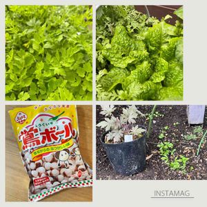 午後から本降りの雨です☔️ 今日のお花はセリ🌿 ↖️再生栽培のセリがプランターいっぱいになったのでお昼に鳥蕎麦といっしょに食べました。 ↗️サンチュも大きく育ち お肉を巻いたりサラダにしたり美味しい🥗 ↙️大好き鶯ボール💕 たまに出会うと喜んで買います😆 関西方面にはよく売っているのでは? でもなんで〜うぐいす? ↘️去年枯らしたティアレラには 今年出会えず 代わりにピンクスカイロケット 届いてあまりの小ささにガッカリ💦 隣にでている芽? 確かジニアの種をパラパラしたはずなのに ニゲラっぽい😂 ジニアはどこにパラパラしたかな〜? 花壇の中は宿根草がモリモリしちゃって 行方不明です😅