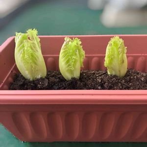 |ョ'ω'〃)おはようございます♪︎ 再生野菜を鉢植えにしたら こんなに大きくなって 嬉しいです😊☘