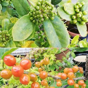 クリスマスホーリーと さくらんぼ( 暖地)の実 もうじき 食べられるかも🎵