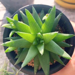 神苑💚ハオルチア ちょっと前にホムセンで真っ黒な姿で売られていた😱 内側からみどりんになってきたよ☺️ 本当はこんな色なのね🎵 神苑って神社とかの境内の意味だそうです。