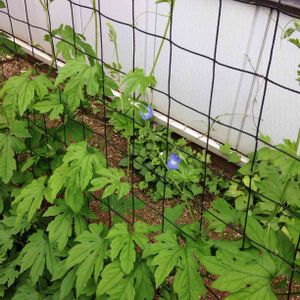 今年のグリーンカーテンの奥に去年のグリーンカーテンのこぼれ種からのヘブンリーブルー。 かわいそうで抜けなくて、咲いてしまった(^_^;) ますます抜けない💦 ちなみに今年はゴーヤーです♪