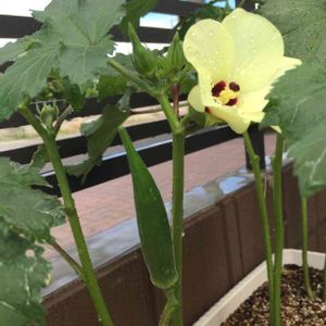 オクラと花。 息子が帰ったら収穫予定。 夕食にでも。