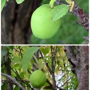 2021.5.18 スモモちゃんは大きい物で3センチ💕 今年は期待できそう🤤 桜と思われる実も少し成ってます💕 しかし、梅はやはり1個も発見できず💦 上:3センチ程のスモモの実 下:桜と思われる実(上にあるので大きさ解らず)