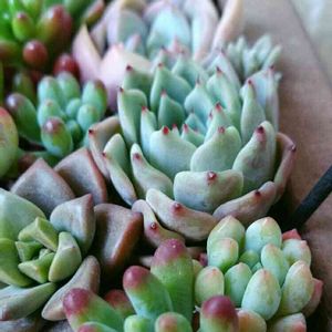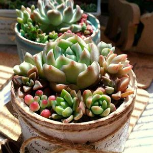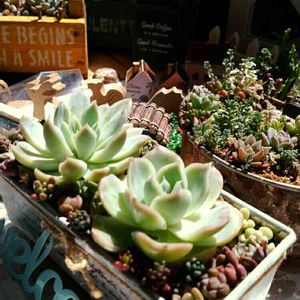 こんにちは😊 今休憩時間、こっくりこっくりしちゃってる最中です😅 ほどよいあたたかさで眠気が😓 今日のpicは、木箱の寄せ植えの一部💚💚 いい感じにぷっくりしてます💕 眠いときに起きてないといけないってキツいんですよね😥