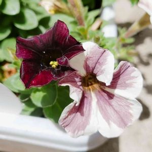 同じ苗から違う色が咲きました😀 ペチュニア モンローウォークベールヴァルド🏵️