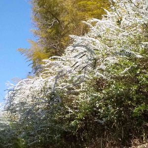 万博公園の外周にて、2年前と同じアングルで「竹林」と「雪柳」をパチリ!📸💙🎋🌼😊😄🤗🌞✌️