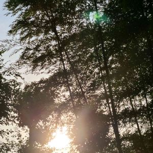 🏷️樹木見上げ隊 お寺の境内の竹林に朝日が反射してました☀️