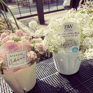 ビオラの後に植える苗を購入しました。 宝塚市の園芸店でおすすめされたアリッサムです。店のおじ様にすんごいpw押されたw まぁpwの苗買う気マンマンで来店したから良いけど。シェリは越冬無理なのかな? どちらもモリモリに育てて行くつもりです。西日に負けるなーー