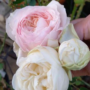 ちょっと手がお邪魔してますが、和バラのしずくです。 今季はこれで終了だと思います。 一月には一回り大きい鉢に植替えして、来季も綺麗な花が見たいです❣️