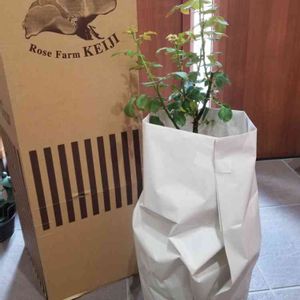 こんばんは 今日はひどい雨から始まった愛知県 娘ちゃんの小学校への登校をどうしようかとかと迷った程でした (•́ω•̀ ٥) ほどなくして、雨が小降りになり… ほっとしたところへやって来ました! ( *´艸`)ムフフ 4月に注文して待ちに待った和ばら、1️⃣号さんです!! 2️⃣号さんは生育不良らしく秋になるようです。