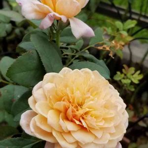 こんにちは☔️ 今朝は晴れ間もあったのに、本降りになってきました😥 我が家のバラ開花No.23は、和バラ「絃(げん)」です🌹🌿 形が「雅」とそっくり~と思ったら、兄弟?姉妹?枝変わり?のようですね💕 「絃」はオレンジ系ですが、咲き進むと少しピンクがかってきました💛💗