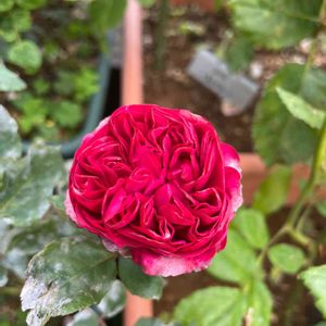 「おへやで育てるばら」から 今はお外で土で育てている わばら『かしこ』さん。 お迎えして1年ちょっと、 見事な房咲きです💕 茎が細くて枝垂れるので、 最近の強風に煽られまくっていますが 順調に咲いてくれています♪