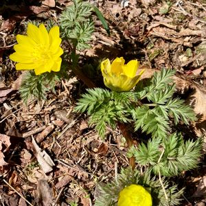 福寿草🌼 昨日、阿智村に行って福寿草の咲いているのを見つけました😍 この花が咲くと、春が来た❣️と嬉しくなります🤗 キンポウゲ科フクジュソウ属