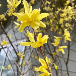 レンギョウ🌼 鮮やかな黄色のお花が春!春❗️ 昨年より枝が伸びて茂ってます🎶😍 モクセイ科レンギョウ属