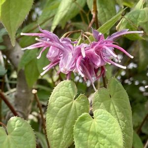 イカリソウ🌸 ピンク色のお花に柔らかな薄緑色の葉🍃 よく似合います💕 メギ科 イカリソウ属