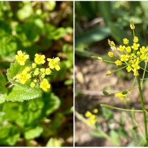 イヌナズナ🌼 畑に沢山黄色の花が散らばってます。 今まで見た事がない🤔 黄色バージョンのペンペングサ? イヌナズナのようです。 間違えてましたら、教えて下さい🙇♀️ アブラナ科イヌナズナ属