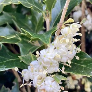 ヒイラギ 深緑色のトゲトゲの葉っぱに白い花💠 ほんのり香り美しい✨😍 モクセイ科