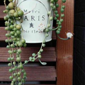おはようございます(*^^*) 今週もよろしくお願いします!💕 グリーンネックレスの花が1つ咲きました! 蕾はもう1つ確認出来てます❗️😊