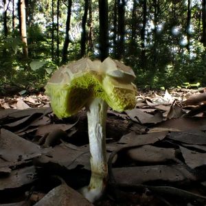 キレイな黄緑色の菅孔💚💛 イグチの仲間 マントカラカサタケ…🤔💭カナ? 2010年の新種 温暖化のせいかな 子供なら座れそう😌