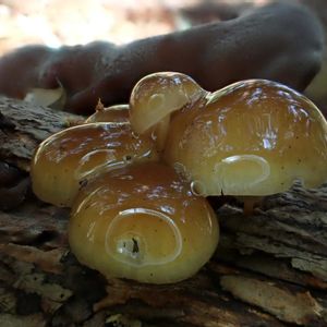 サガリハリタケが硬いのか柔らかいのかみたいな疑問がでたので触ってきました✋ 今日は手前にチシオタケ🍄も出てくれおりコラボではいチーズΣp📷ω・´) 感触はほかのきのこと同じでした🍄