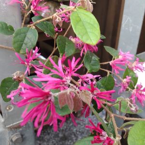 赤花マンサク💕 皆さんの投稿見てて、私も見てみたいと思ってたら出会えました🎶 綺麗な濃いピンク色でした💞 立ち寄った農産物直売所の山野草コーナーで。