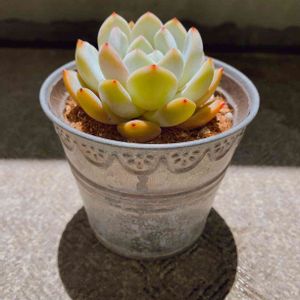 我が家の3.5号鉢シリーズ・・ 御当地リメ鉢(鳥取編)のアリエルさん~~~💦 周りの鉢葉・・斑点あって汚いけど・・中心は新しく葉が盛り上ってきました(マッテマシタ😅)