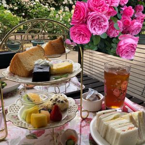 本日2枚目の投稿です。 月曜日に在住市内のバラカフェで、 友達とランチしました♪♪ 右上は、カフェで1番きれいに咲いていた レオナルドダビィンチ🌹 綺麗なバラを眺めながら、 お喋りにも花が咲いちゃいました-☻*