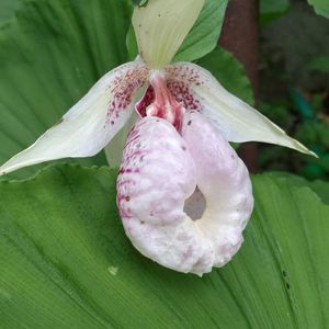 今日のお花 🍀クマガイソウ ラン科 アツモリソウ属 山野草 熊谷草の葉も蕾も花も不思議な花姿
