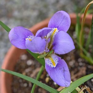 カンザキアヤメ(カンアヤメ) 2月初めに1輪目が咲いたきり やっと2輪目3輪目が咲きました💜