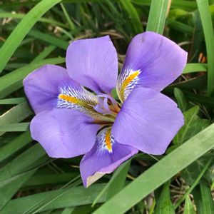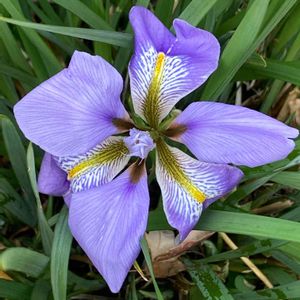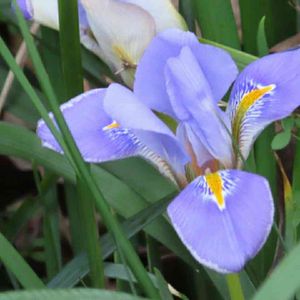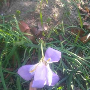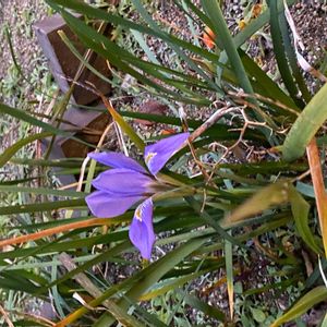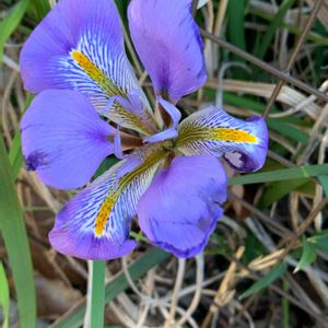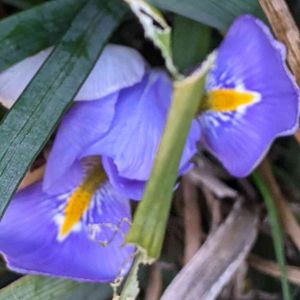カンザキアヤメ 出先からの帰り道。もう、アヤメが咲いていると目を疑いました。 ググってみると冬に咲くアヤメと分かりました😉 🌿の下で花開くので全貌が上手く撮れませんでした😅