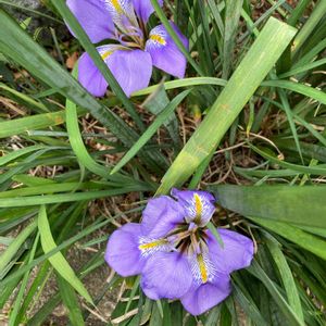 カンザキアヤメ 12/20撮影 神社の境内にあったのですが、今咲くアヤメがあるのか❓ 不思議に思って社務所の方に聞いてみたら、「毎年今の時期に咲いていますよ」という回答でした😅 調べてみると冬咲きのアヤメがあるではないですか…❗️😳 常緑性の多年草で、「カンザキアヤメ」の名の通り、冬の寒い時期に花を咲かせる珍しいアヤメです。 カンザキアヤメの花期は1月~3月。 花期になると、葉の間から花茎を伸ばし、頂部に淡い紫から青色をした花径7~10㎝程度の花を咲かせます。