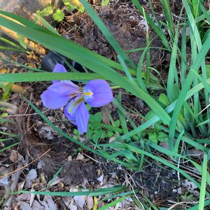暖冬でもやっぱり下の方で咲いてます カンザキアヤメ 次々に可愛い顔を出してくれます😊 地中海原産 花言葉 優雅な心 あなたを大切にします 信じる者の幸せ ピンクや白もあるそうです