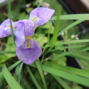 雨の後のカンザキアヤメ 咲き始めから5〜6番目のお花 GreenSnap始める前に庭全部の草花や木をこそげてならして もういなくなったんだろうな と思っていたのに以前と同じところに葉っぱを出して2年 今年はちゃんとお花も付けた😄 頑張るねぇ 根性あり✨